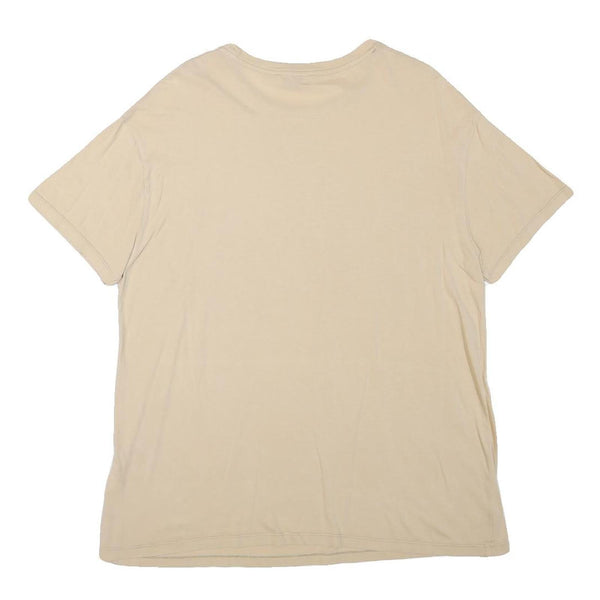 BERSHKA Mens Beige Cotton Blend Graphic T-Shirt XS Short Sleeve Crew Neck Born