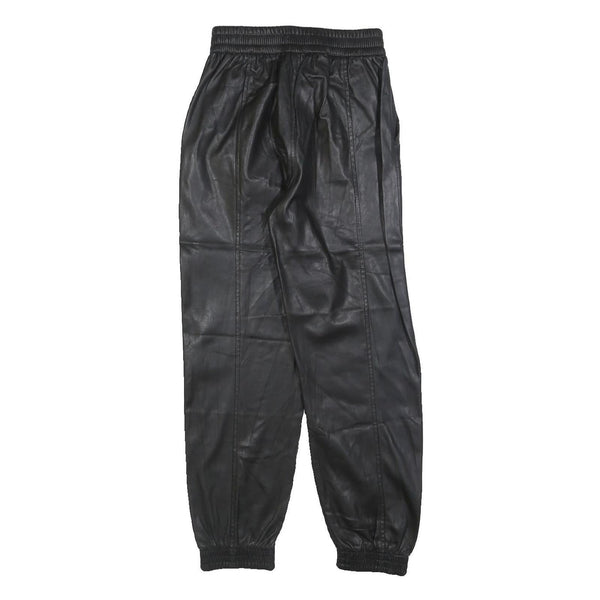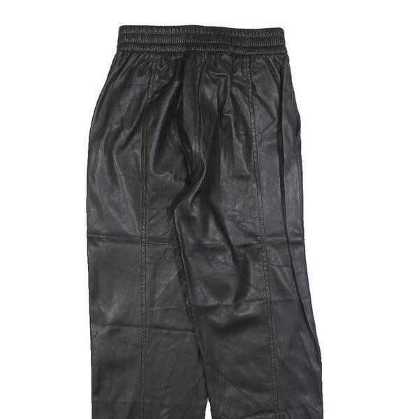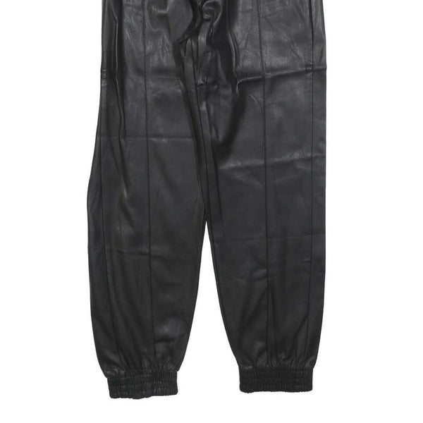 BERSHKA Womens Black Polyester Blend Slim Tapered Trousers W24 L26 Faux Leather