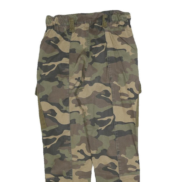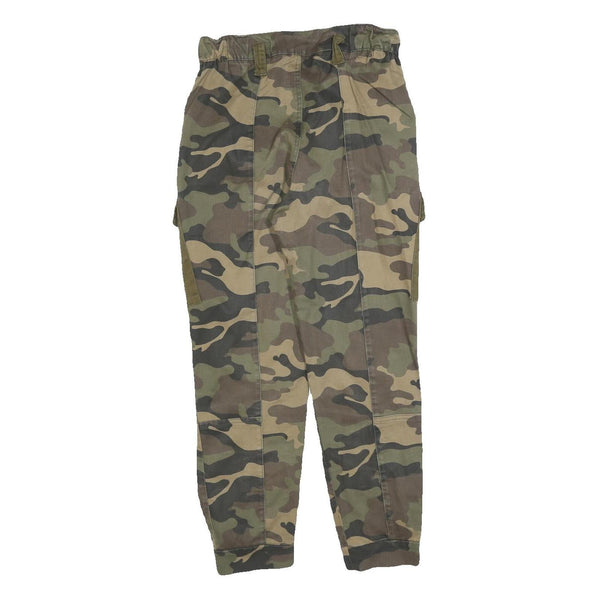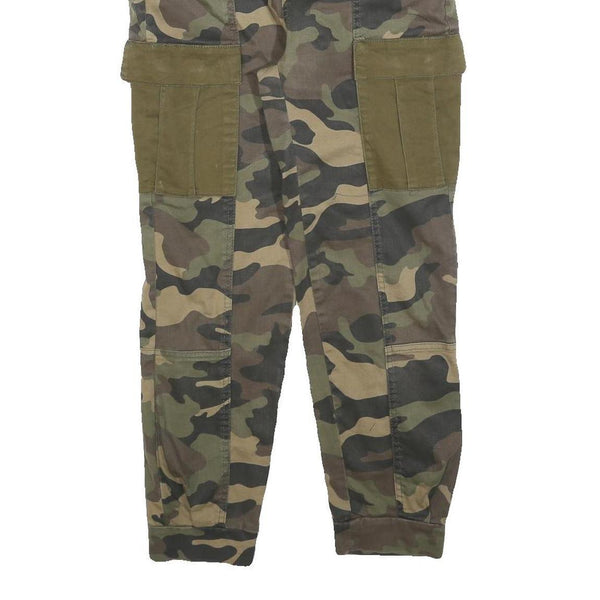 BERSHKA Womens Green Camouflage Slim Cargo Trousers W26 L26 Cotton Blend Zip