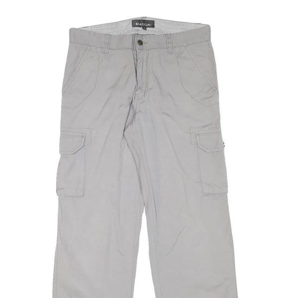 BIAGGINI Mens Cotton Blend Grey Regular Straight Cargo Trousers W32 L32 Casual