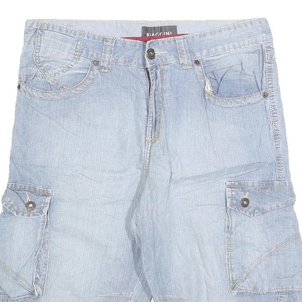 BIAGGINI Mens Light Blue Cargo Denim Shorts M W32 Casual Summer Wear
