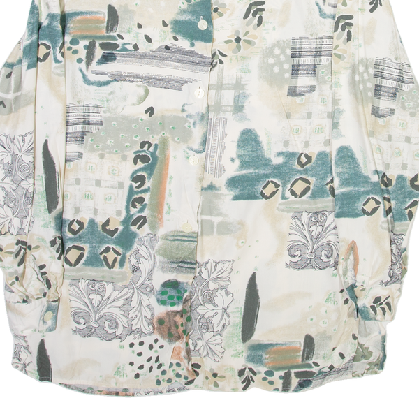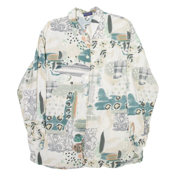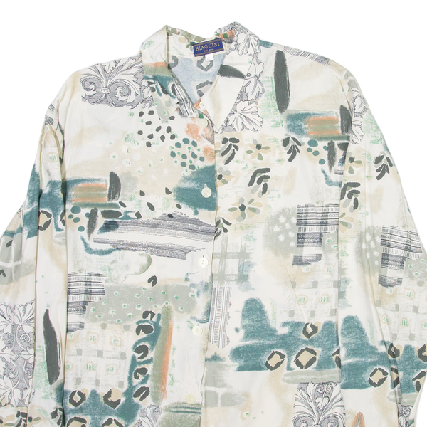 BIAGINNI Womens Printed Shirt White Collared Long Sleeve Viscose Crazy Pattern M