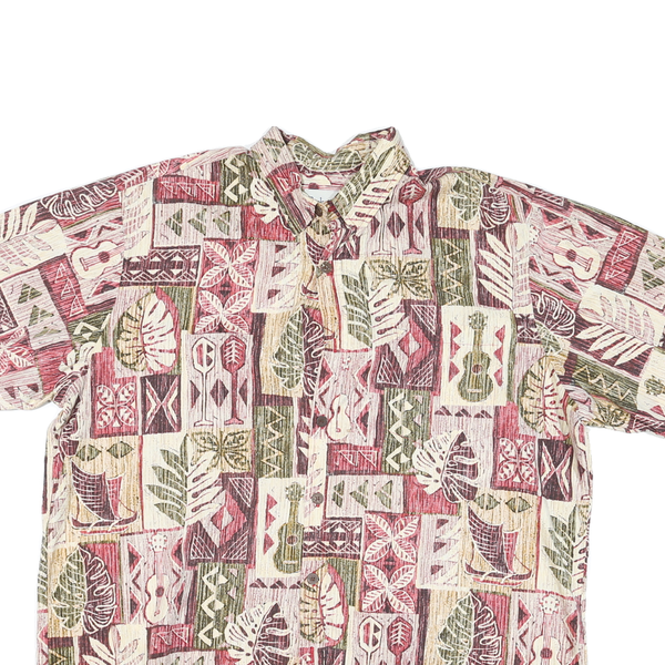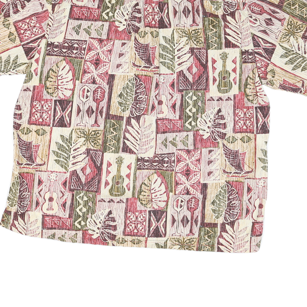 BISHOP ST Mens Cream & Red Leaf Print Cotton Shirt L Casual Summer Beachwear