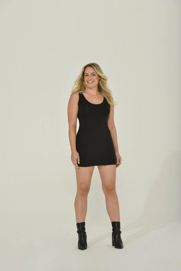 Allow this black tank-dress to unleash the stylist in you. Be daring and wear it with heels to the club or wrap our semi-sheer chiffon maxi dress over it Kurti-style for any occasion; a bit of mystery is always sexy. We love it with chunky boots, worn as a swimsuit cover, or drop it over our slimming ankle pants with a chunky belt and cardigan. The options really are endless.