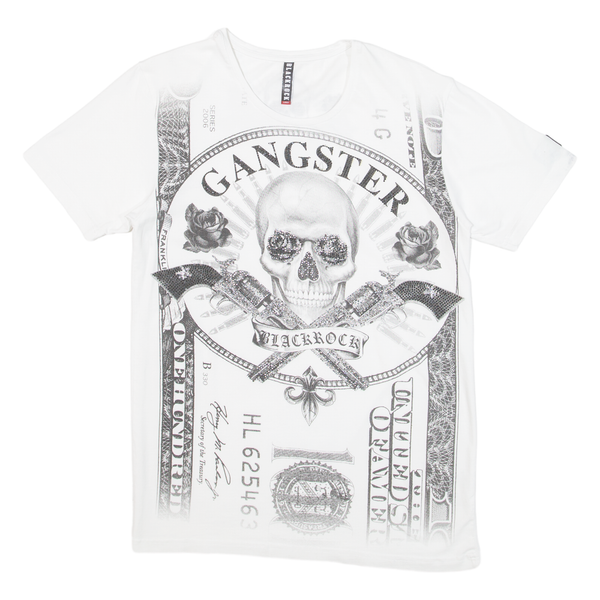 Home BLACKROCK Skull Mens Biker T-Shirt White L