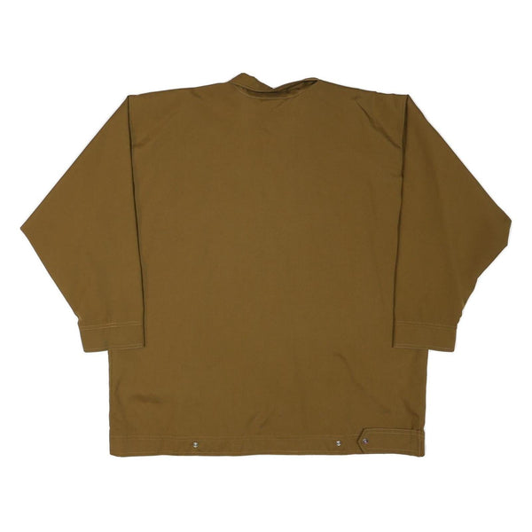 The jacket is a medium size, suitable for menswear. It has a relaxed, slightly oversized fit, ideal for layering. With subtle sporty inspiration in the stripe detailing and branding, this versatile jacket is perfect for adding a retro touch to casual outfits.