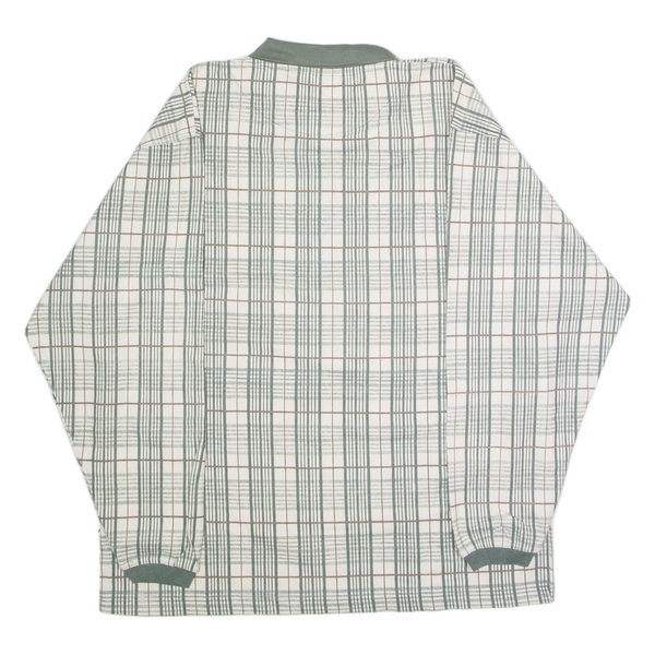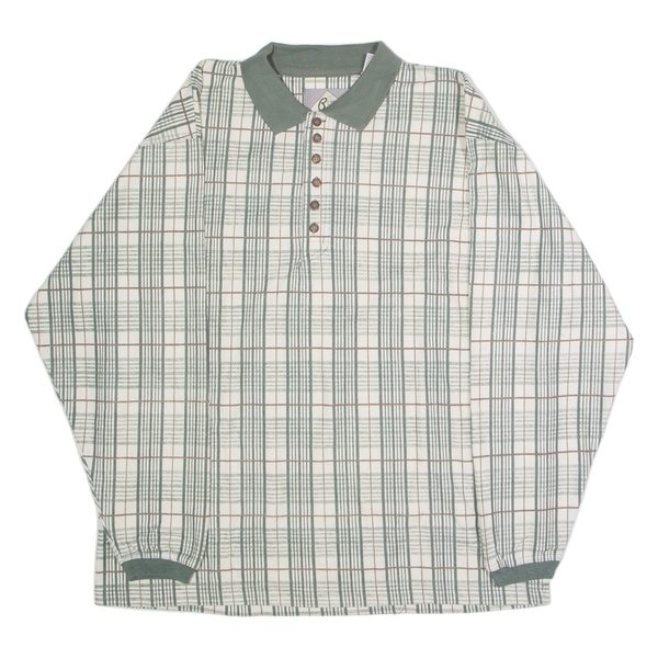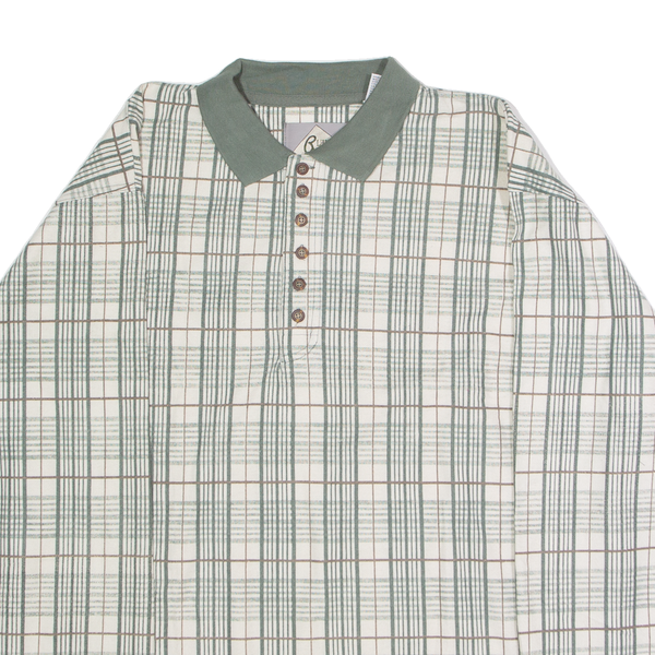 BLUE JEANS Mens Polo Shirt Cream 90s Check Long Sleeve L