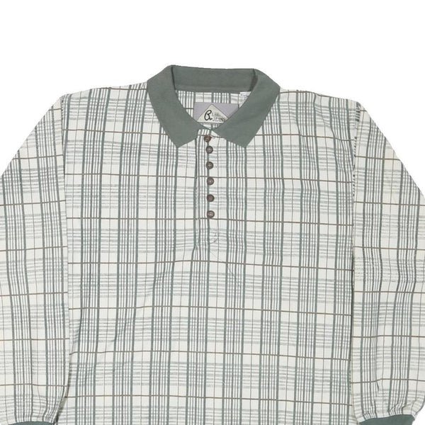 BLUE JEANS Mens White Green Checked Long Sleeve Polo Shirt M Cotton Blend