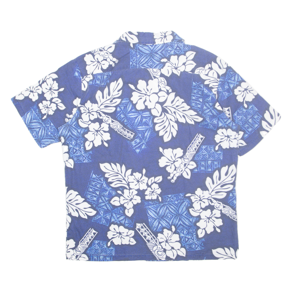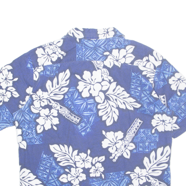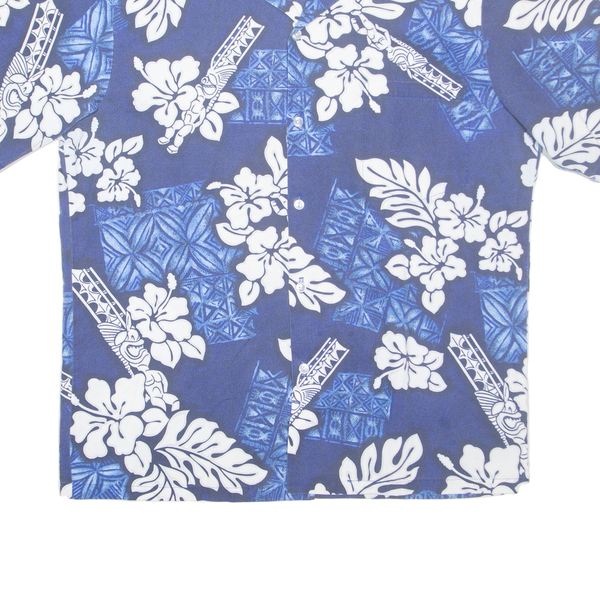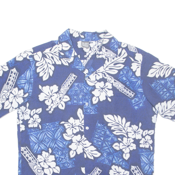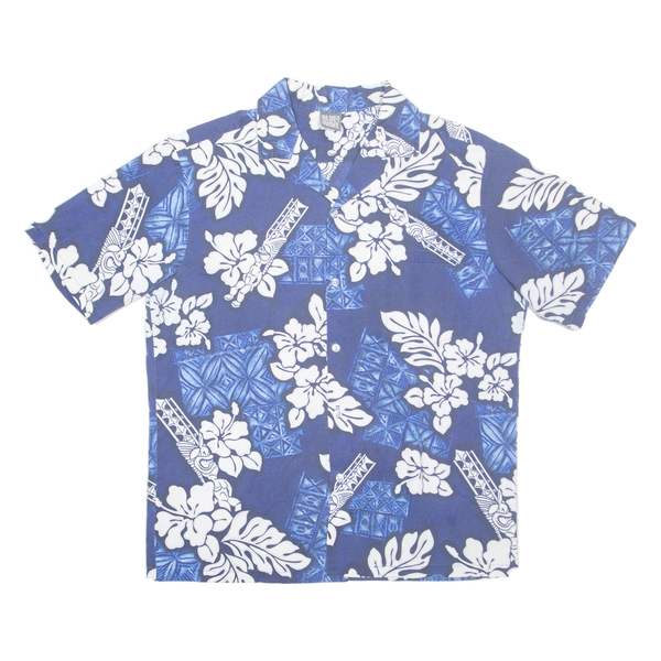 BLUE WAVE Mens Hawaiian Shirt Blue Floral L