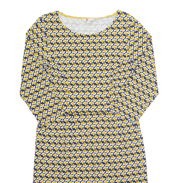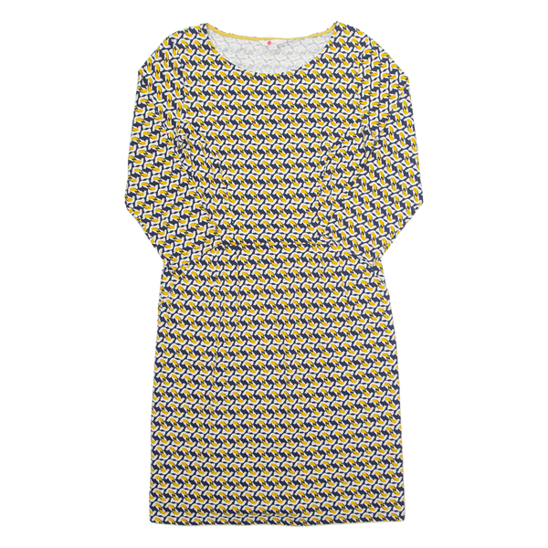 BODEN All Over Bird Print Womens Day Dress Yellow Animal Print Midi UK 12