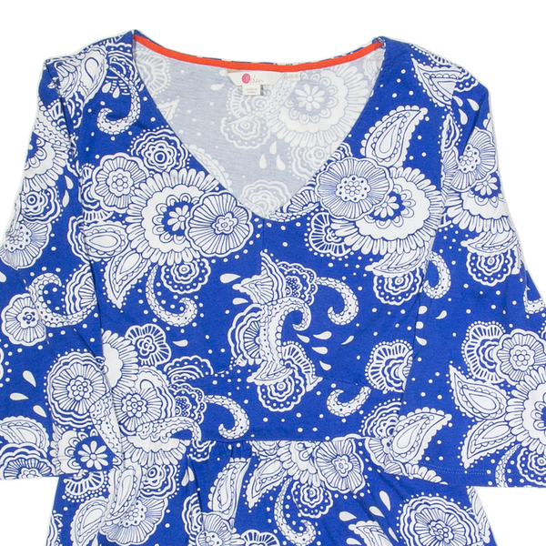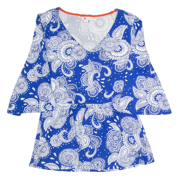 BODEN Flare Sleeve Womens Printed Top Blue V-Neck Crazy Pattern UK 10