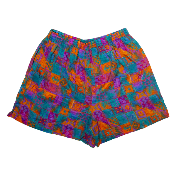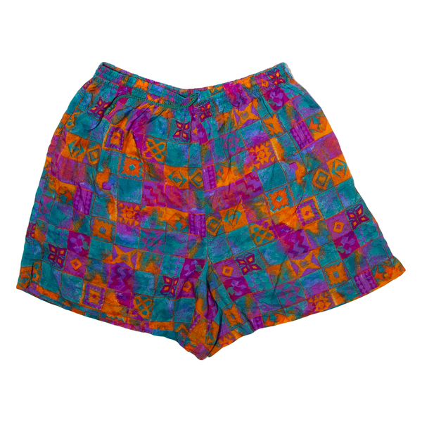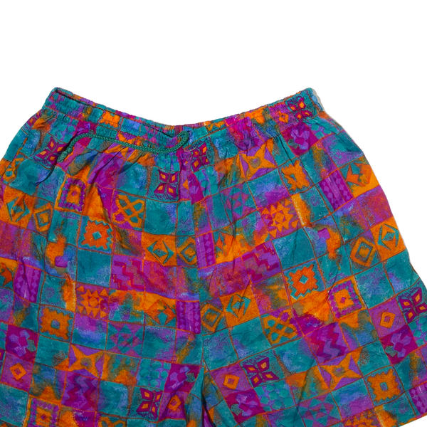 BOLO SPIRIT Mens Casual Shorts Blue Relaxed 90s Crazy Pattern XL W30