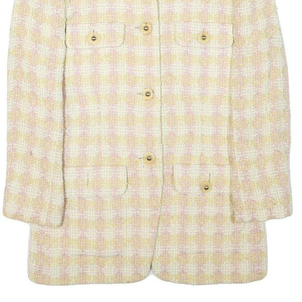 Bon genie womens yellow & white checked wool blend button jacket xxs woven