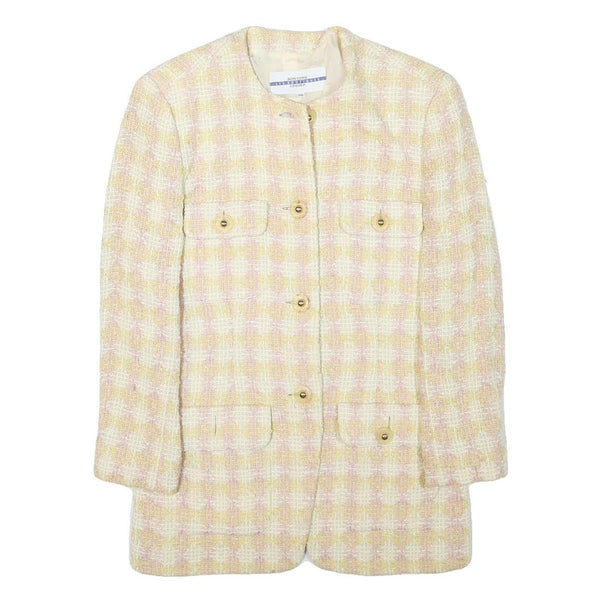 BON GENIE Womens Yellow & White Checked Wool Blend Button Jacket XXS Woven