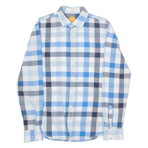 BOSS Extreme Slim Fit Mens Shirt Blue Plaid Long Sleeve M