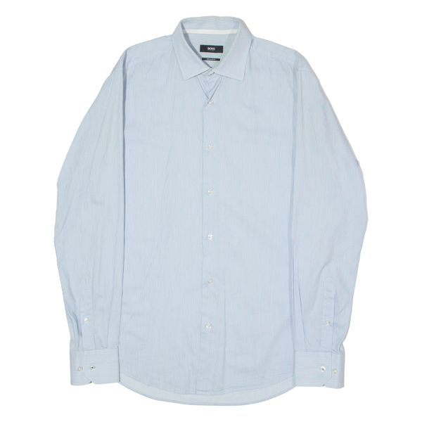 BOSS Gieson Mens Plain Shirt Blue Long Sleeve M