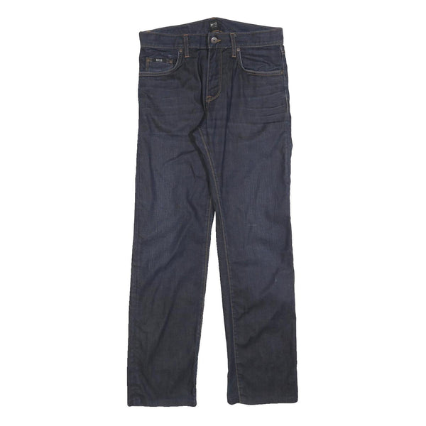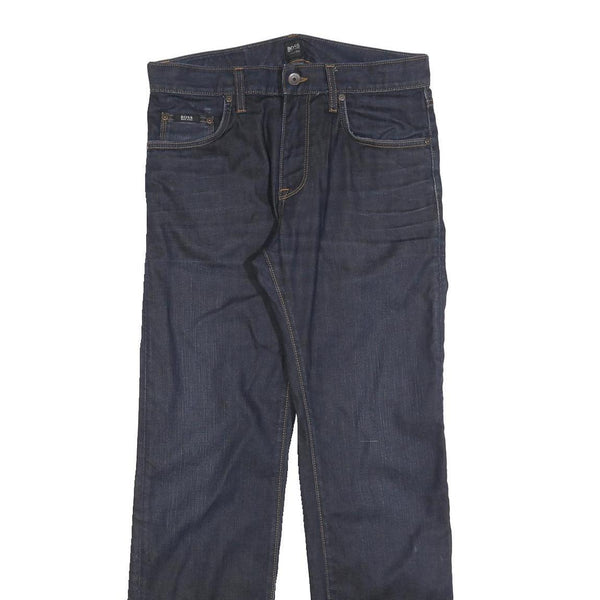 BOSS HUGO BOSS Mens Jeans Blue Regular Straight Denim Dark W32 L30 Stylish Zip