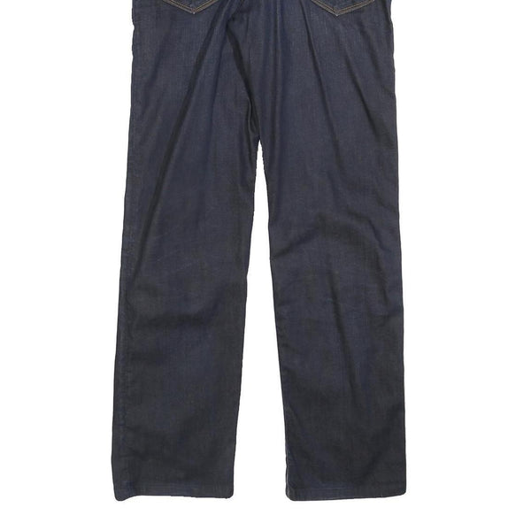 Made from a cotton blend fabric, these jeans provide both comfort and durability. They have a zip closure and traditional five-pocket design, typical of classic denim jeans. The dark wash gives a sleek and versatile look suitable for various outfits.