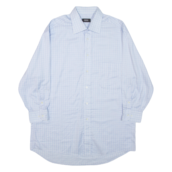 BOSS HUGO BOSS Mens Shirt Blue Check 3/4 Sleeve XL