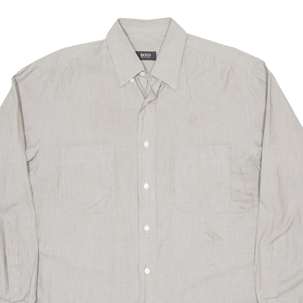 BOSS Mens Shirt Grey Striped Long Sleeve XL