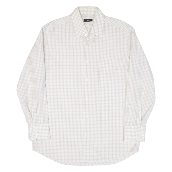 BOSS Mens Shirt White Check Long Sleeve XL
