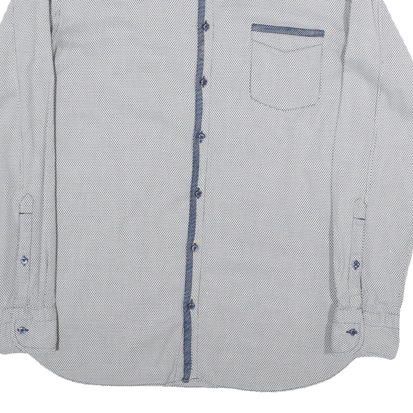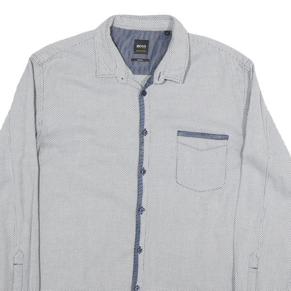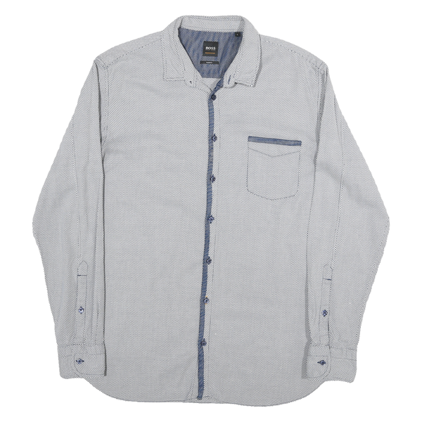 BOSS Mens White & Navy Cotton Blend Shirt Long Sleeve Casual L