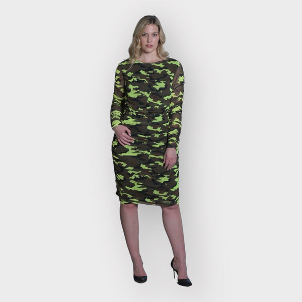 Boudicca neon lime camouflage ruched midi dress inclusive plus size up to uk 26 / us 22