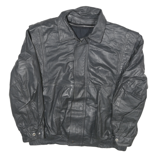 BOULEVARD CLUB Mens Black Leather Zip Jacket L Classic Comfortable Stylish