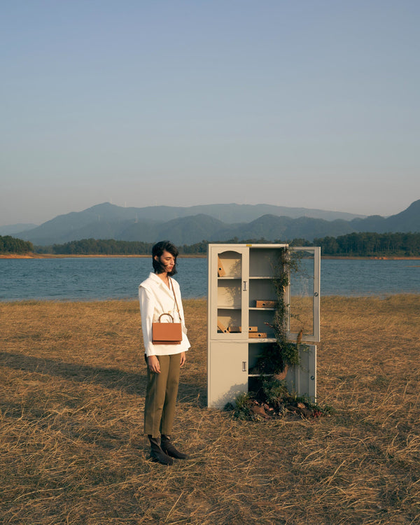 Inspired by the look of vintage books, the Boxwood bag brings a timeless and truly seasonless look. Attached with our unique Evergreen Handle made by molding real tree branches followed by hand coloring each handle. Each Evergreen Handle is unique with slight differences in color and texture.