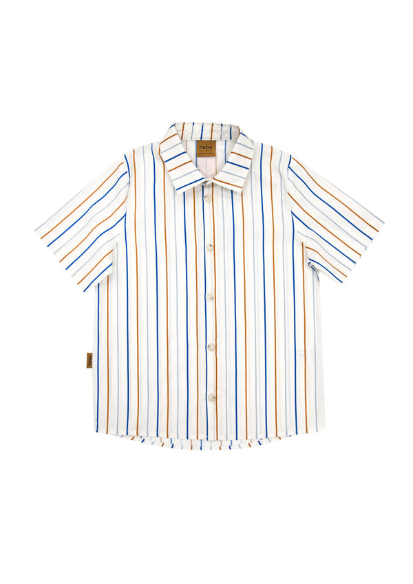 Introducing the summer shirt designed for stylish boys, trendy boys, and stylish tweens. This off-white shirt, specifically crafted for boys, features blue and sand-colored stripes, adding a touch of sophistication to any boys' outfit. Crafted to be extra lightweight, it's the ideal choice for the hot summer days when boys need comfortable and stylish clothing. Each shirt is made with a focus on fair trade practices by Hebe in Latvia, ensuring both quality and ethical production of boys clothing.