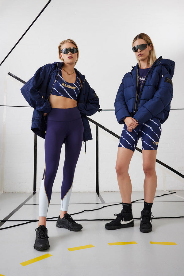 The Ascend Sports Bra in Tie Dye Print comes as part of our Own The Arena Collection. From oversized and street to feminine and fitted, choose your power silhouette and prep for the level up. Own The Arena is about embracing everything on the other side of limits. A classic cut sports crop with scoop neckline and racerback silhouette, the Ascend is purpose built from our P.E FLEX fabrication. A matte finish fabric with a soft hand feel, P.E FLEX gives you full range of motion - perfect for Pilates, yoga and all studio-based workouts. With a random cut custom tie dye print, each Ascend Sports Bra is a unique one of a kind. We recommend styling it with the Ascend Bike Short, Century Hoodie in Peacoat and Odyssey Cap.
