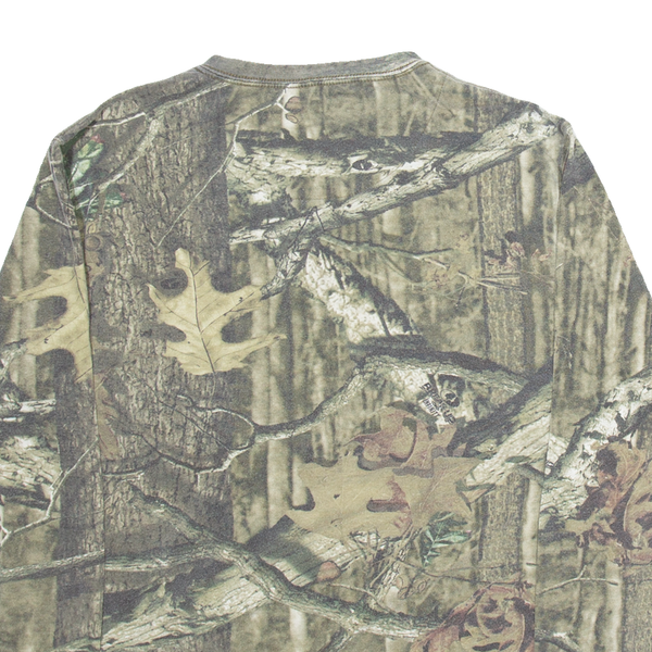 BREAK UP INFINITY Camouflage Mens T-Shirt Green Long Sleeve Button Neck L