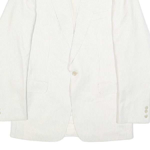BREISACHER Mens White Pinstripe Jacket S Woven Button Closure Classic Fit Blazer