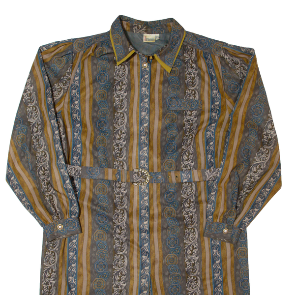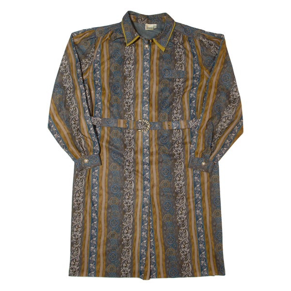 BREMER Womens Shift Dress Brown 90s Striped Long Sleeve Midi L