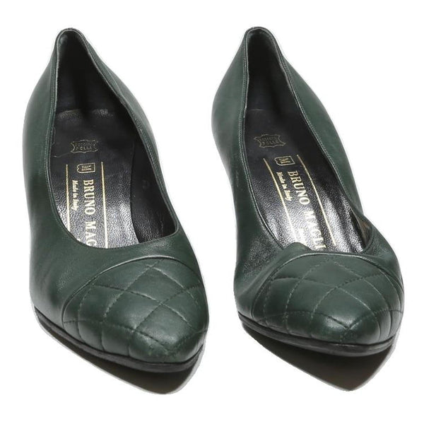 Bruno magli womens green leather pumps uk 4.5 quilted toe classic stylish
