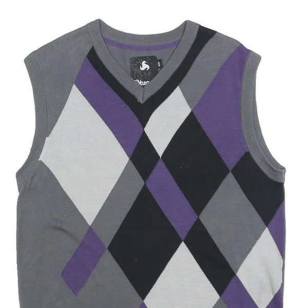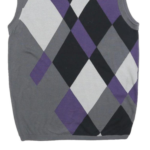 Btugan mens grey purple black argyle cotton sleeveless v-neck jumper m stylish