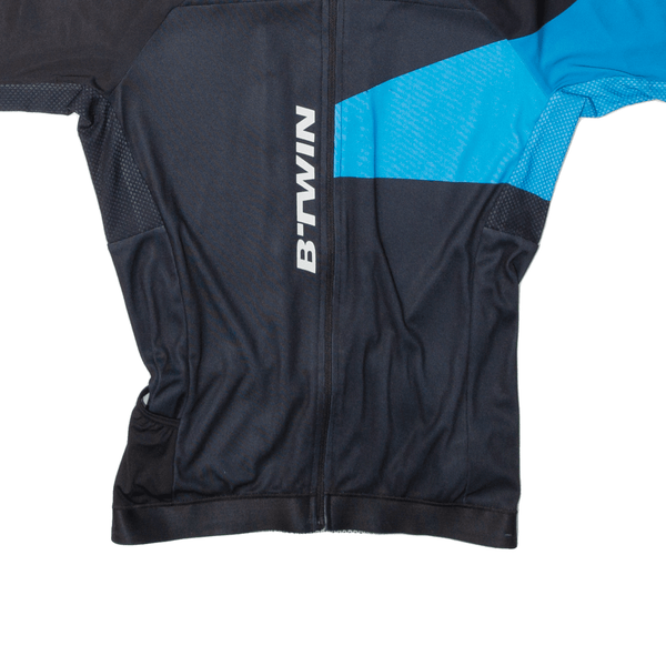 Home BTWIN Cycling Mens Jersey Blue High Neck S