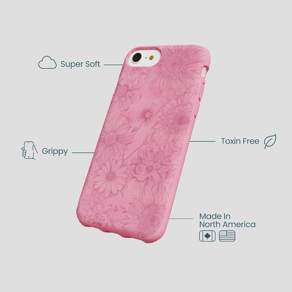 Bubblegum pink flora iphone 6/6s/7/8/se case