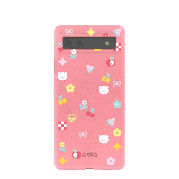 Protect your phone in style with the Bubblegum Pink Pretty Picnic Case from our Pela x yeunglove Artist Series Collection. This sustainable, durable, and compostable phone case is inspired by spring and features lil' bows, cherries, baskets, watermelons, flowers and more. Keep your phone safe while adding a touch of whimsy to your everyday life.