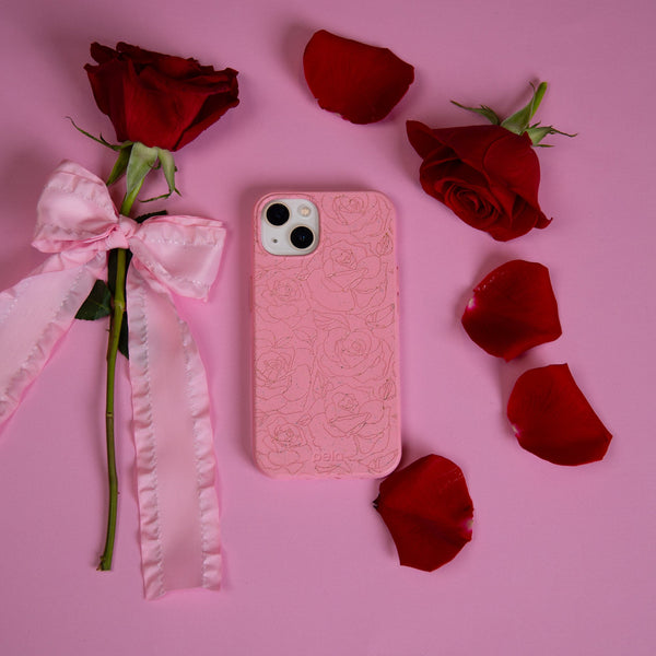 Infuse your daily routine with the delicate charm of the Rosettes Phone Case from Pela, blossoming with a garden of sketched roses over a bubblegum pink canvas. This case is for those who appreciate the timeless elegance of nature's most renowned flower, offering a sustainable embrace for your phone. ✨
