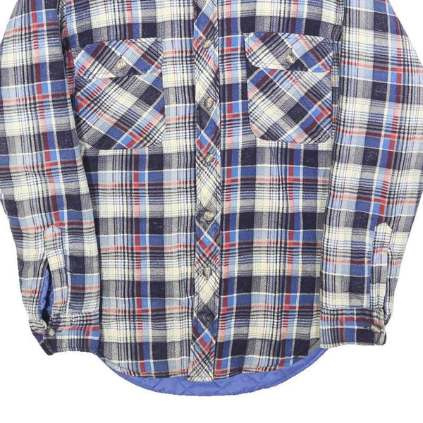 BUD BERMA Lined Mens Blue & White Check Shirt S Button Front Casual Cotton Blend
