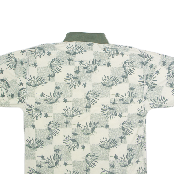 BUGLE BOY Leaf Print Mens Polo Shirt Green 90s Check M