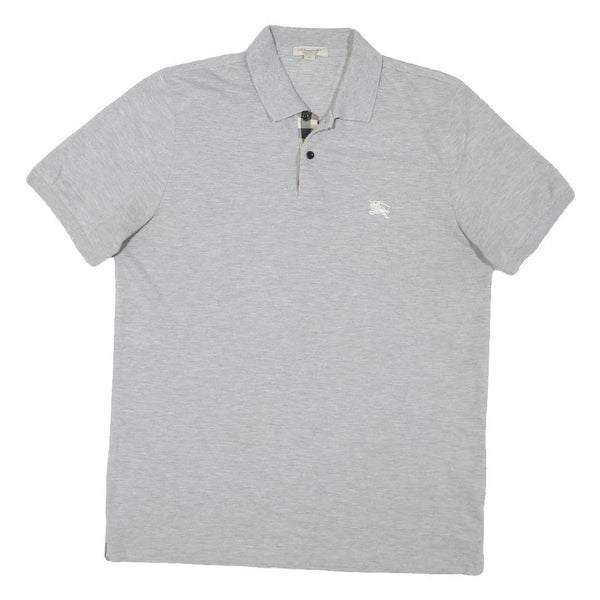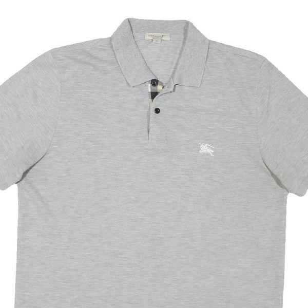 BURBERRY Mens Grey Polo Shirt XL Cotton Blend Short Sleeve Plain