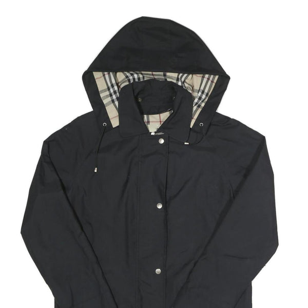 Burberry womens black hooded jacket m polyester plain zip long sleeve stylish