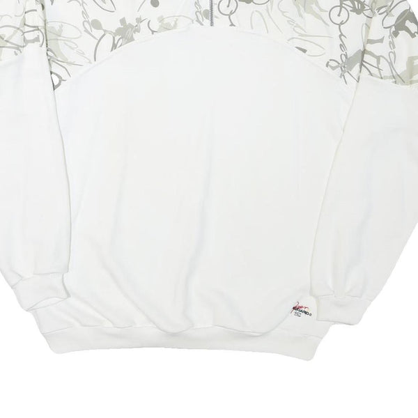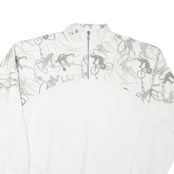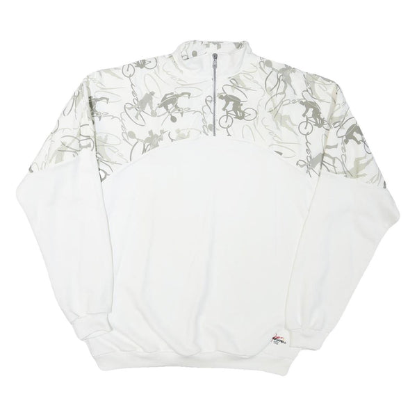 BUROGARO Mens White & Grey Cycling Graphic Half Zip 2XL Polyester Sweatshirt