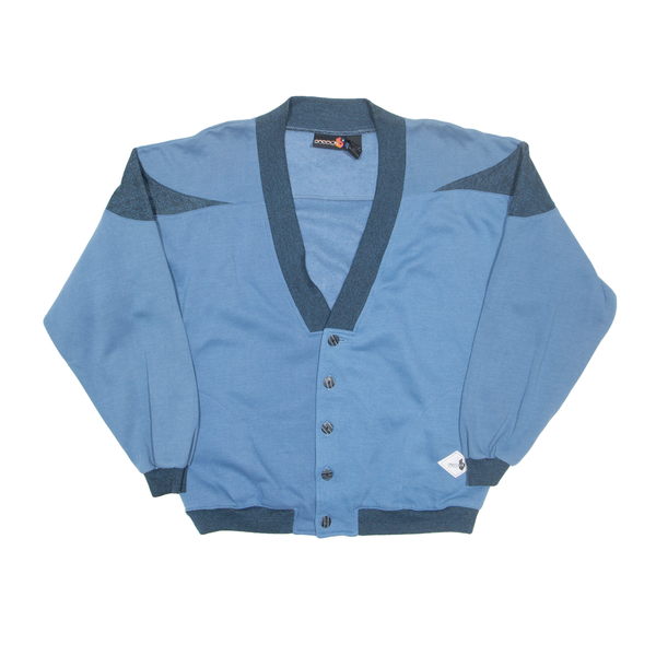 Button Up Mens Sweatshirt Blue V-Neck L