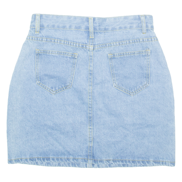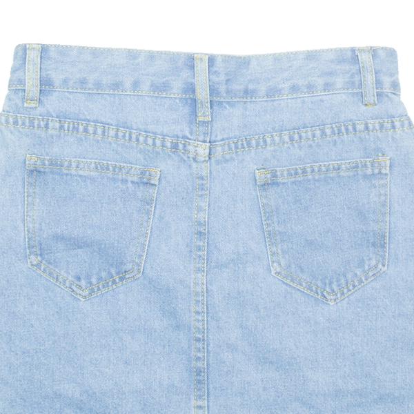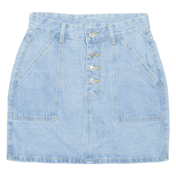 Buttoned Womens Straight Skirt Blue Short Denim S
