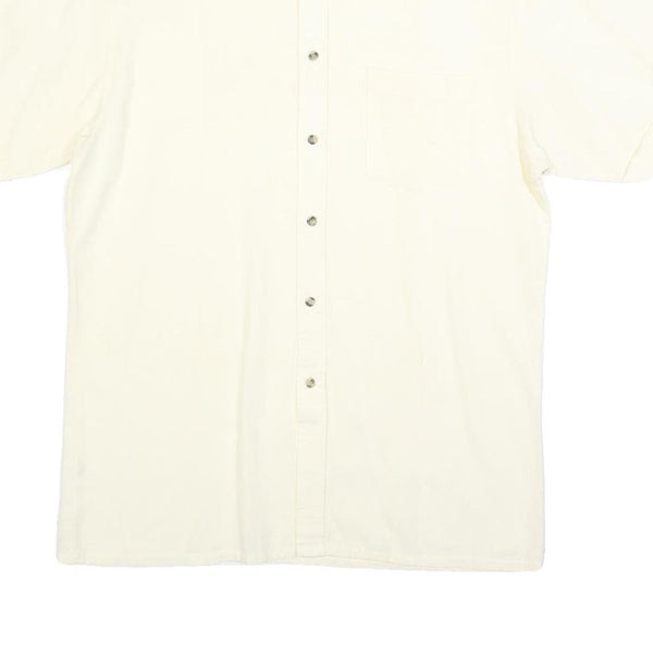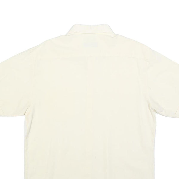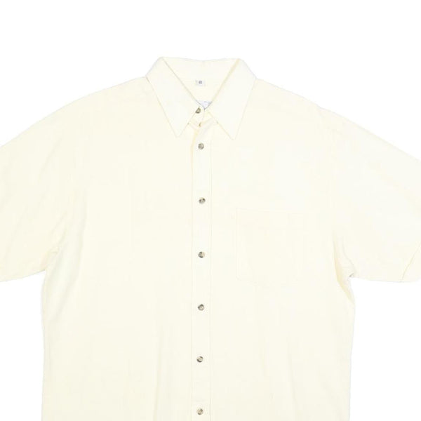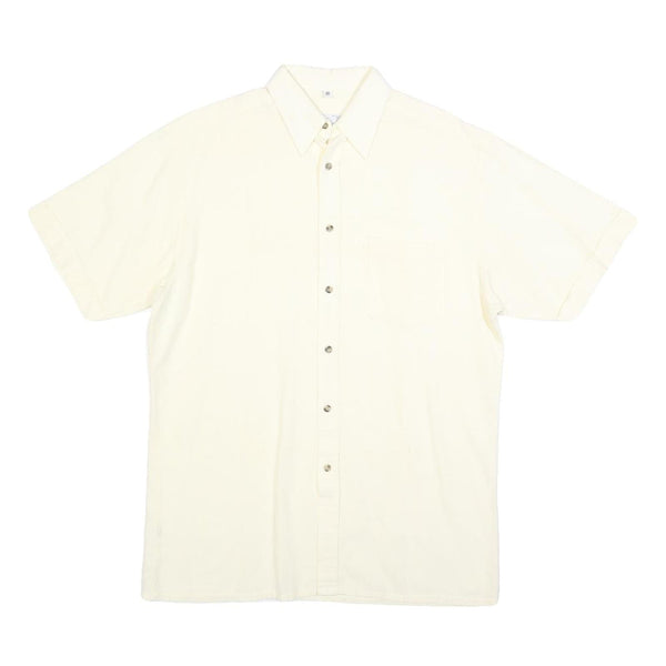C&A Mens Cream Short Sleeve Cotton Blend Shirt L Casual Summer Button Up