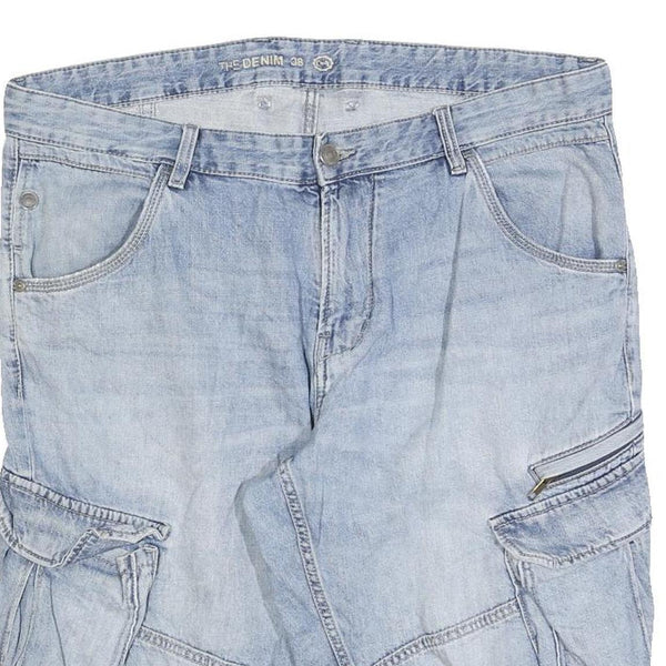 C&A Mens Denim Blue Casual Cargo Shorts XL W38 Functional Pockets