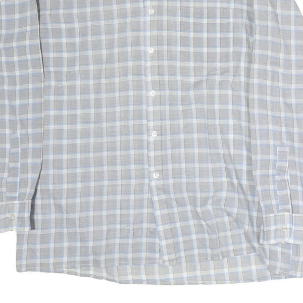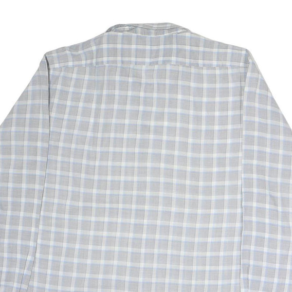 C&A Mens Grey & Blue Check Shirt L Cutaway Collar Button Cotton Casual